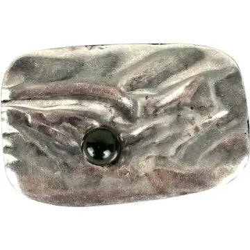 Vintage Artisan Made Silver Modernist Brooch with Jasper Bead