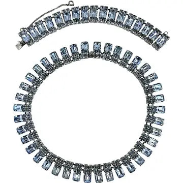 Vintage Blue Baguette Rhinestone Necklace and Bracelet