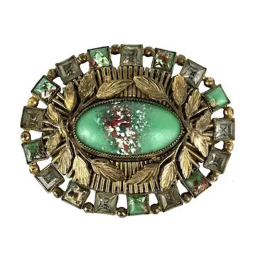 Vintage Asian Holy Man Peking Glass Brooch attributed to Hattie Carnegie