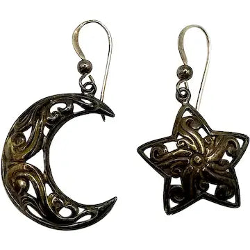 Vintage Sterling Silver Star and Moon Earrings