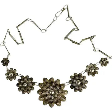Vintage Sterling Silver Vermeil Floral Choker Necklace