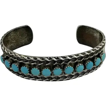 Vintage Zuni Petit Point Turquoise and Sterling Cuff