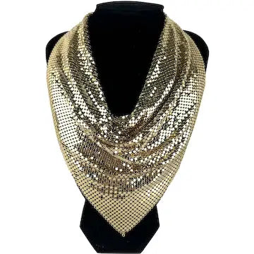 Whiting and Davis Gold Plated Mesh Bib Necklace