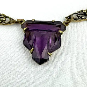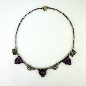 Art Deco Czech Amethyst Glass Choker Necklace