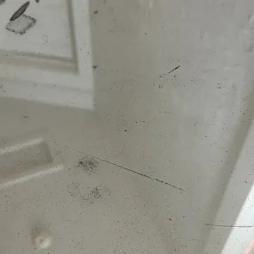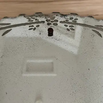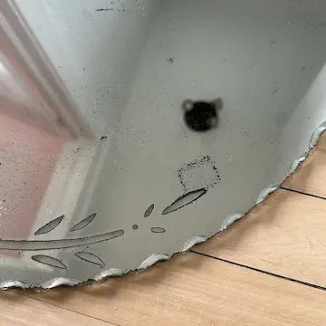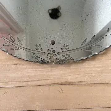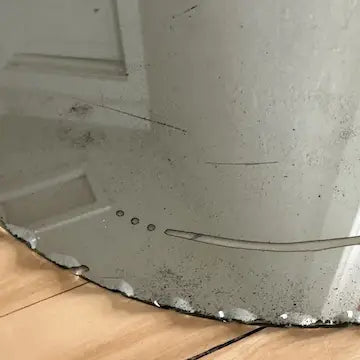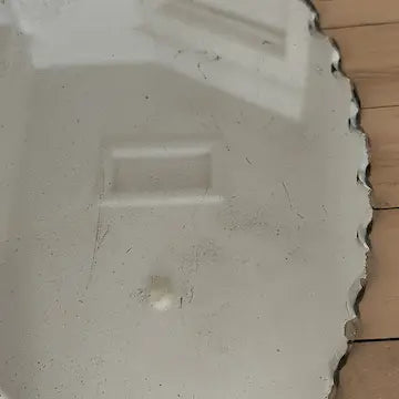 There is a fair amount of wear to the silvering and a few scratches to the surface of the glass. The reflected image is still clearly visible. If you like shabby chic mirrors this may be just what you are looking for!