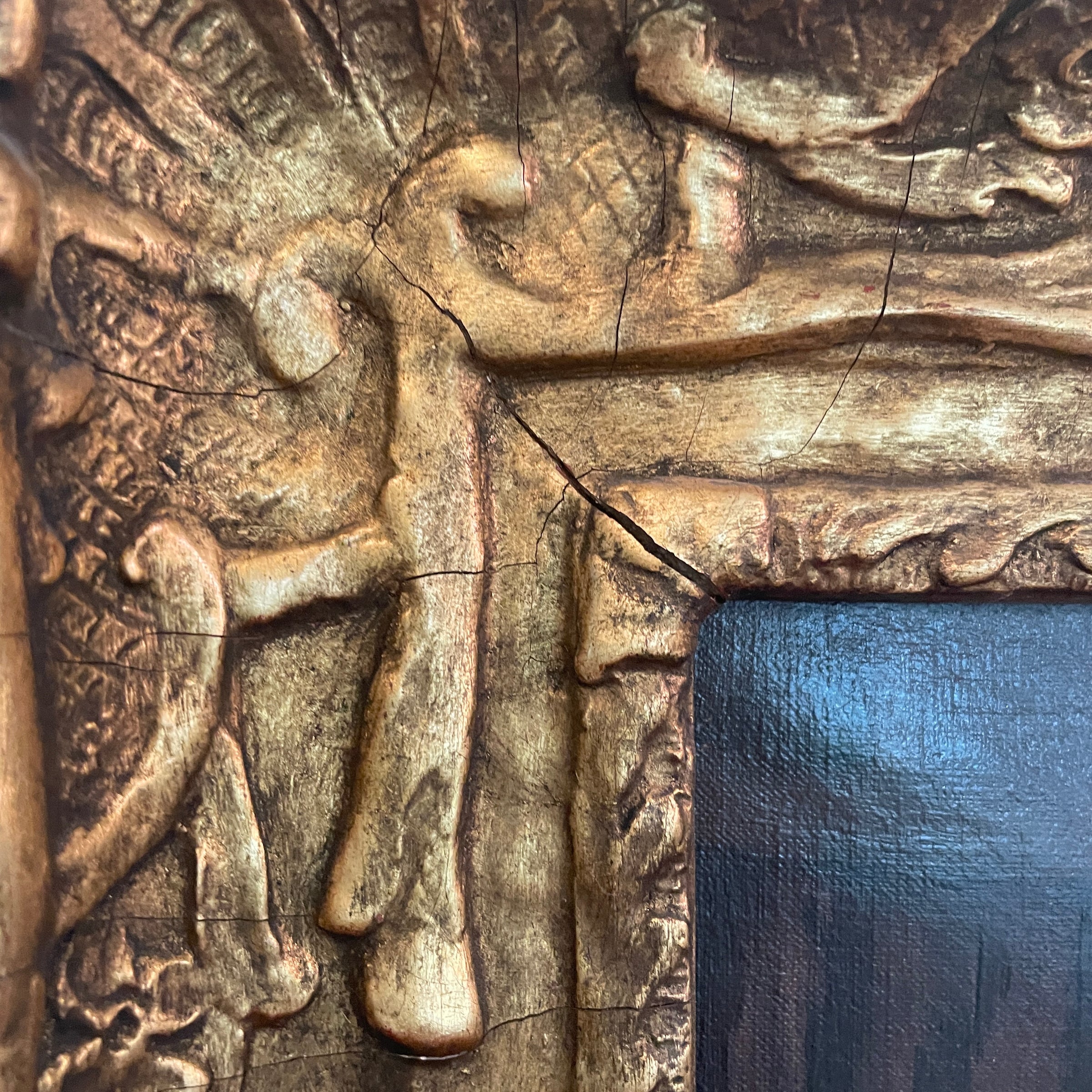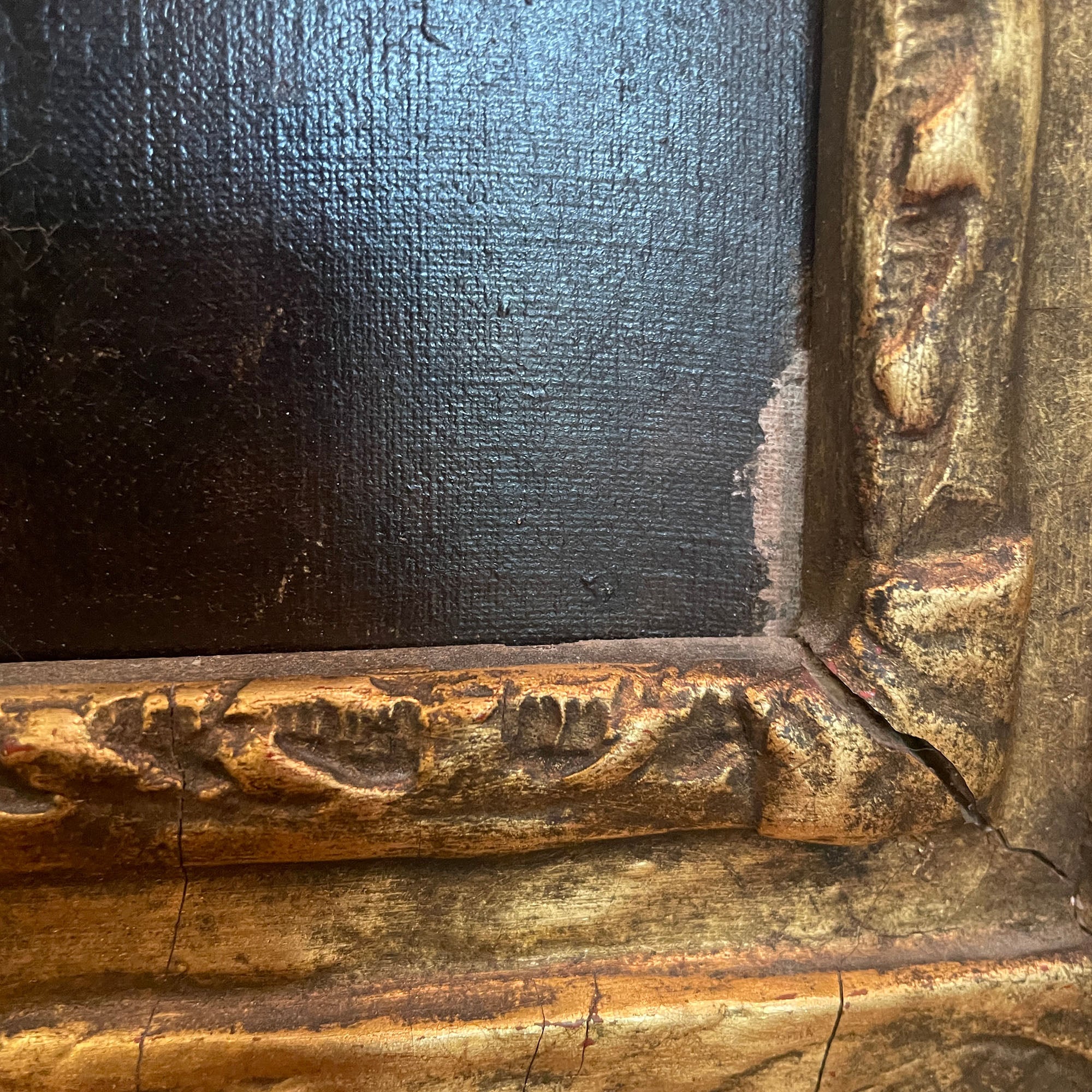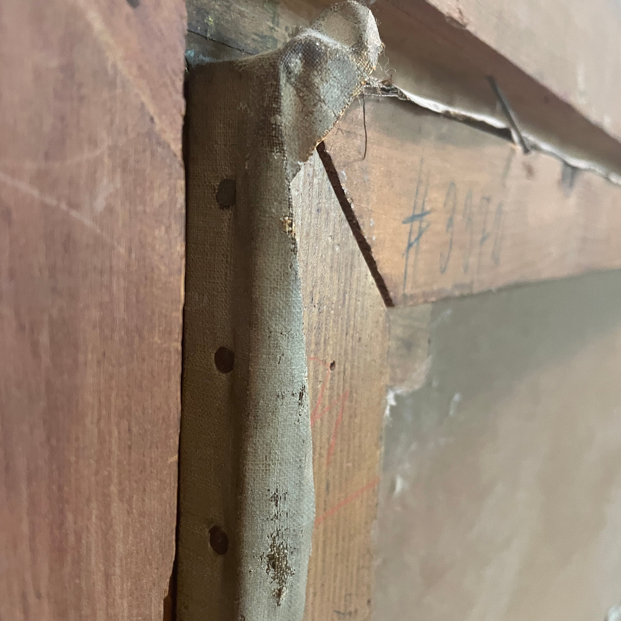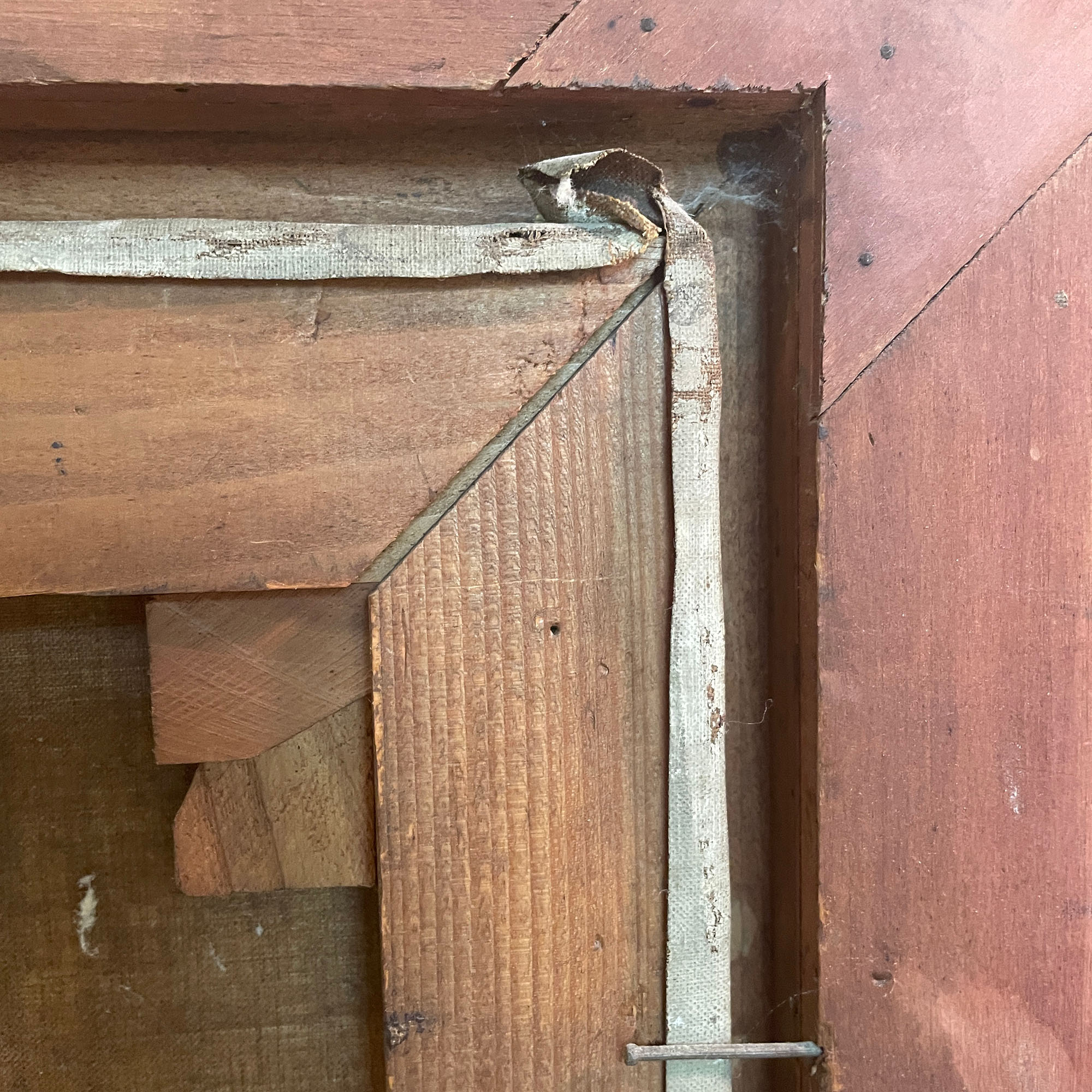 The canvas and stretcher are original. At some point the painting has been reframed in the gold frame it is in now.