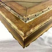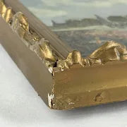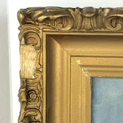 Painting is in good condition with no holes or scratches.  Frame is in fair condition.  It is fully intact but there are several pieces  missing from the edge.