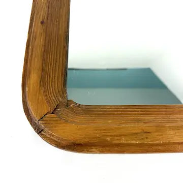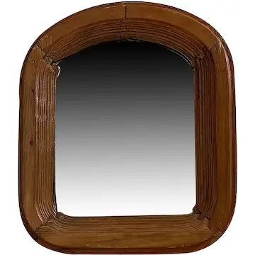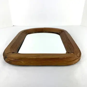 Expertly crafted from dark hardwood and featuring dovetail joints, this antique primitive mirror adds a touch of rustic charm to any space. The hand-made rectangular frame with a unique curved top can be easily mounted on any wall, making it a perfect addition to small rooms.