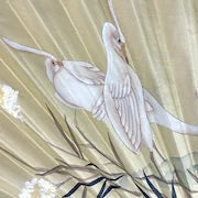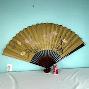 Elevate your decor with our large vintage chinese hand painted wall fan. This exquisite piece features hand-painted cranes on silk and paper, set against a bamboo frame. With its impressive size and intricate details, this fan will add an elegant touch to any room. Embrace the luxury of owning a unique, vintage piece of Chinese art.