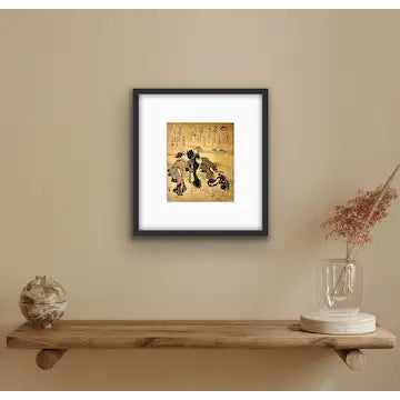 This antique woodblock print from the Meiji period showcases the beautiful artistry of Japanese culture. With intricate details and a depiction of a clam gathering at Shiba-Ura, this surimono by Totoya Hokkei also features three poems printed on handmade paper. A stunning addition to any collection.