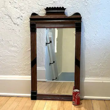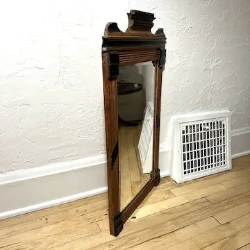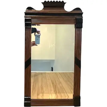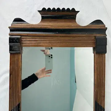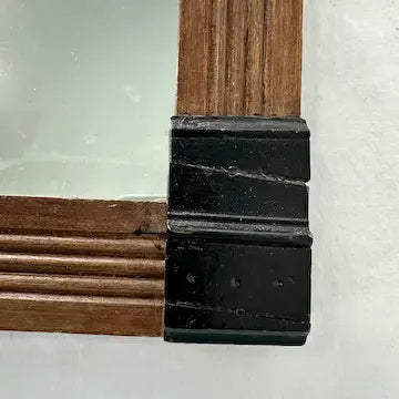 This antique Victorian mirror features ebonized details and a beveled rectangular mirror, mounted on any wall with ease. Made from quality walnut, this timeless piece adds a touch of elegance and sophistication to any room.
