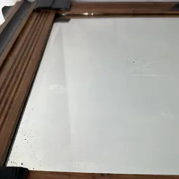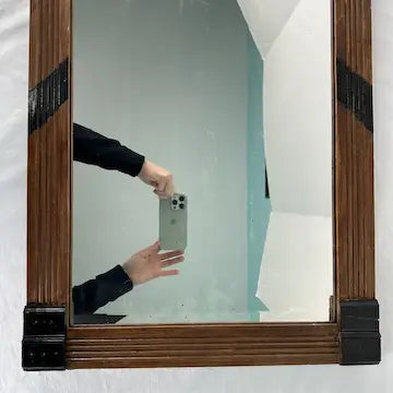 There is some wear to the frame commensurate with age. The mirror has some blemishes as shown but reflects nicely.