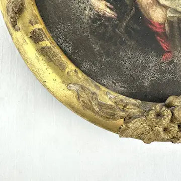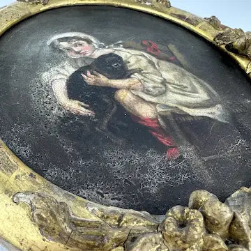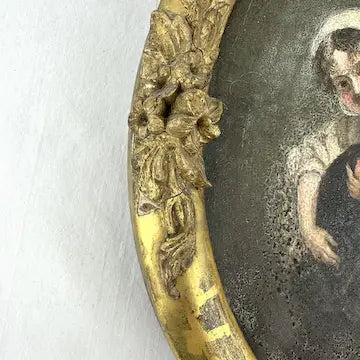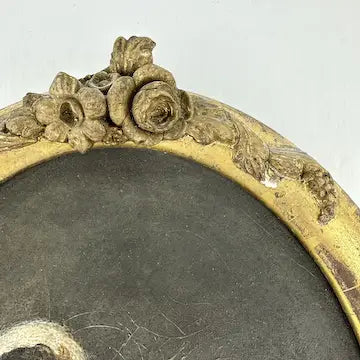 The gilding on the frame is worn and a few small pieces of the floral decoration are missing. Overall though it is in good condition for being over 150 years old.