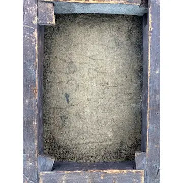 The paint has beaded up to the left and below the image of the girl. This paint is firmly intact and not flaking in any way. The picture is not secured in the frame but stays firmly in place when hung.