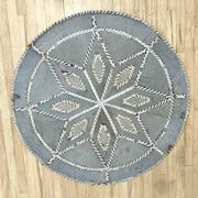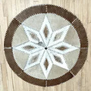 This vintage hand crafted cow hide rug/wall hanging adds a touch of rustic elegance to any space. Made in Argentina, it’s circular shape and diamond pattern make it a striking mid century piece.  It would be perfect for the rustic cowboy cabin.  With its vintage charm and expert craftsmanship, this piece is a must-have for any home.