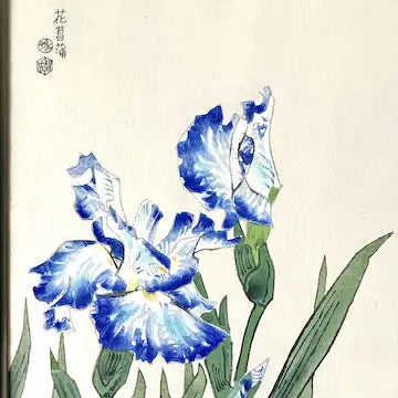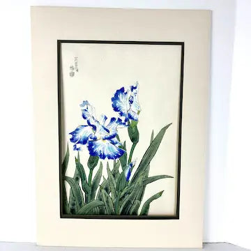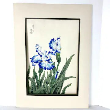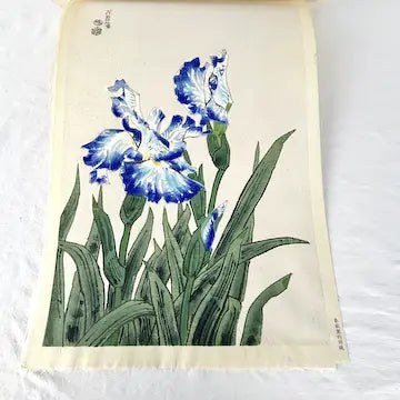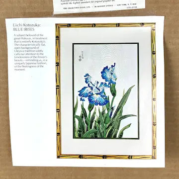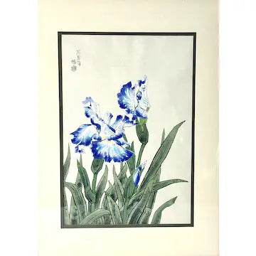 Vintage Japanese Woodblock Print Blue Irises by Eiichi Kotozuka