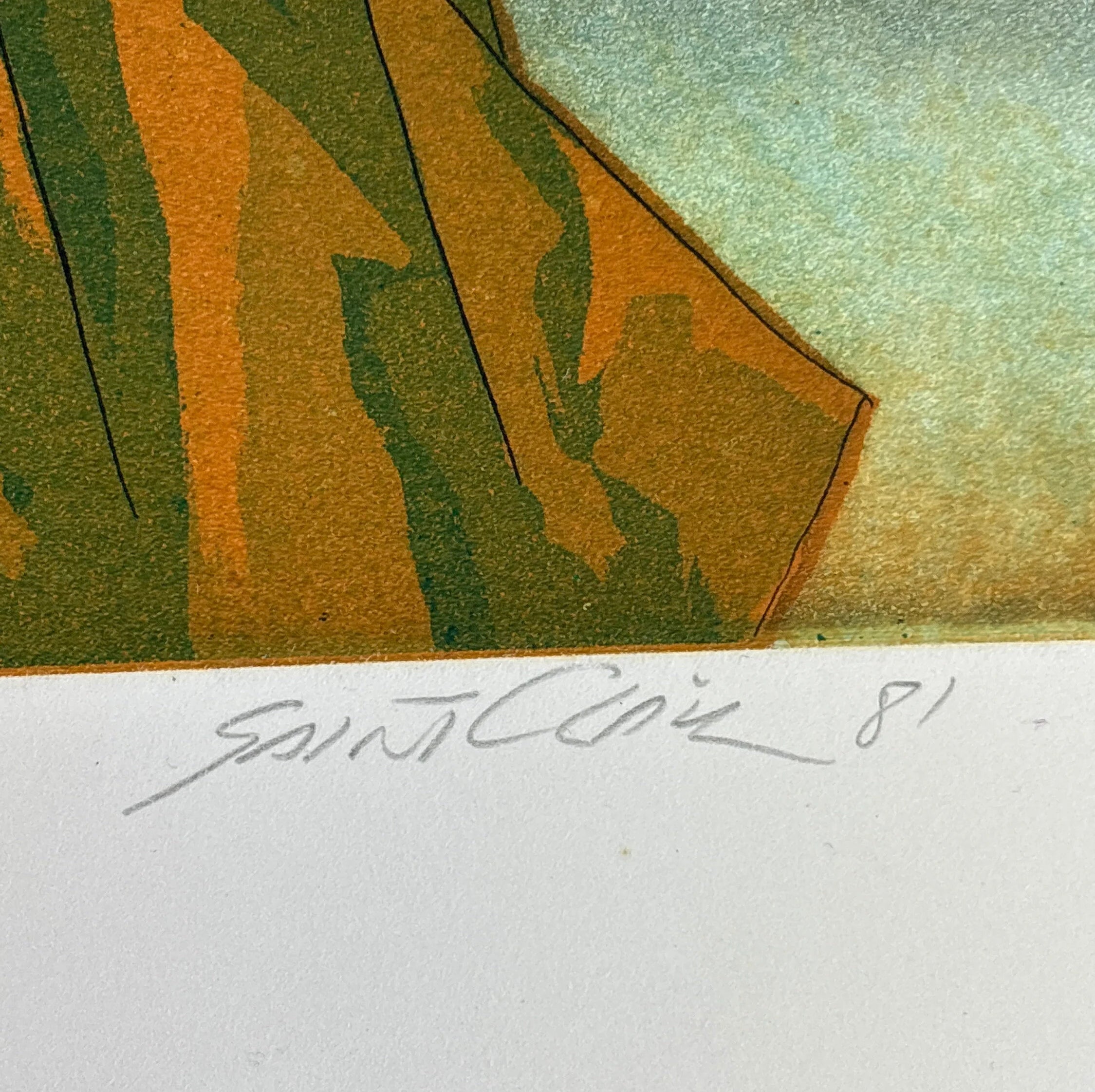 The print is 30”x 22”. It is signed Saint Clair’81 and numbered 22/75.