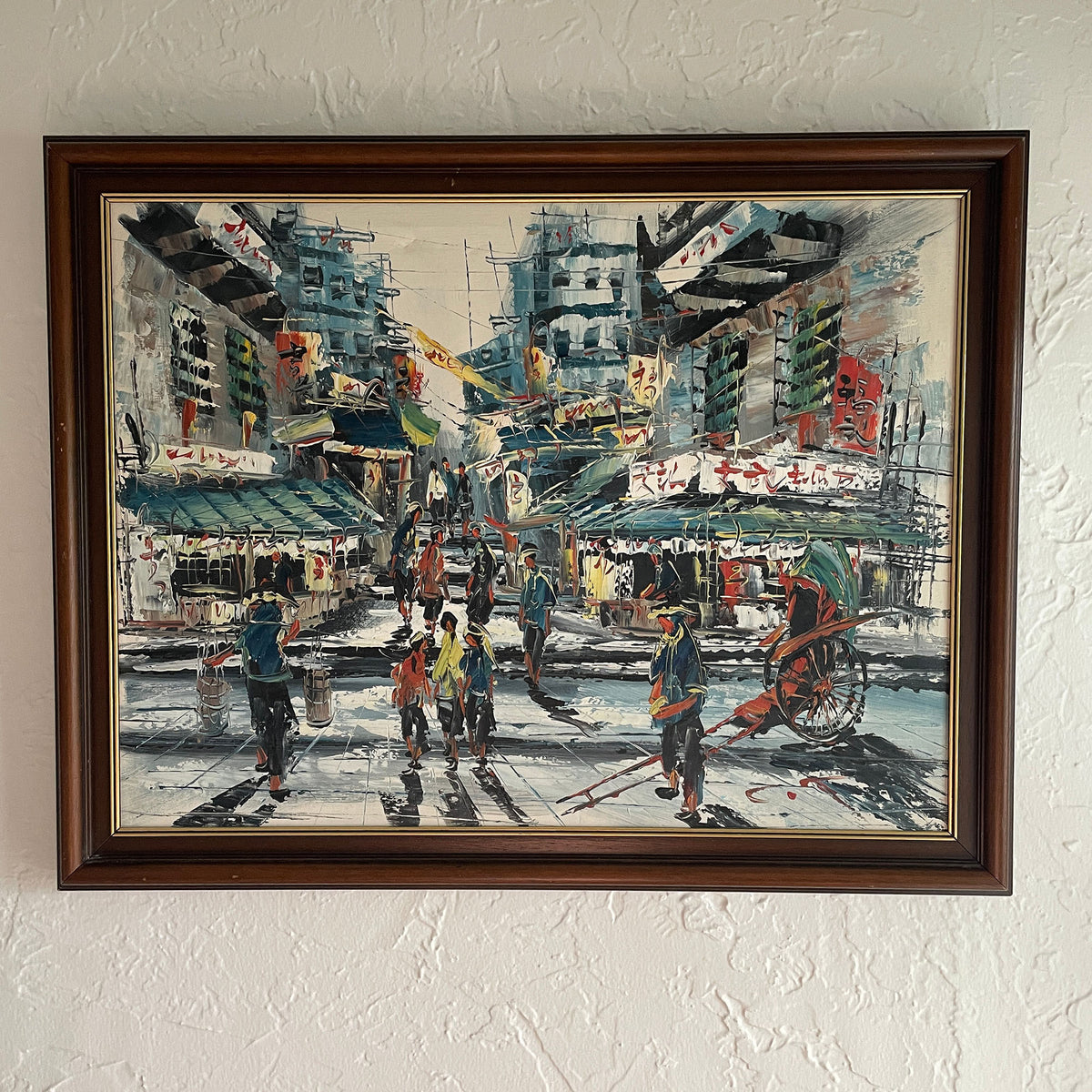 T Chan Original Oil Painting of a Hong Kong Street Scene