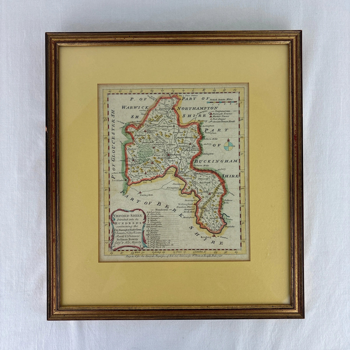 Antique Hand Colored Map of Oxfordshire England by Eman Bowen