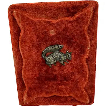 Antique Red Plush Velvet Sewing Box with Applied Squirrel and Bone Tools
