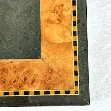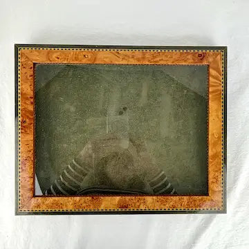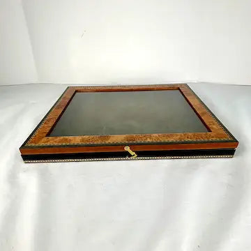 Experience the elegance of Italy with our Vintage Italian Tabletop Wood Display Case. Handcrafted with intricate burlwood and inlay marquetry, this hinged display case is perfect for showcasing jewelry or cherished collectibles. Elevate your collection with a touch of old-world charm.