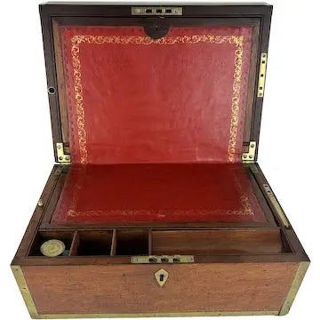 Antique English Rosewood and Brass Military Travel Writing Desk