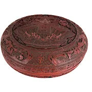 Vintage Round Lidded Red and Black Lacquer Chinese Box