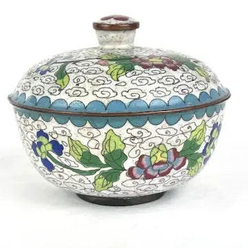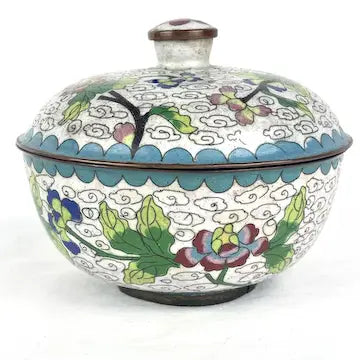 Early 20th Century Chinese White Cloisonne Lidded Bwol