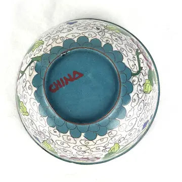 Experience the beauty and elegance of Chinese art with this antique early 20th century white cloisonne lidded bowl. Adorned with a delicate floral motif and accented with teal details and interior, this piece will add a touch of sophistication to any space. Own a piece of history and enrich your decor with this truly unique find.