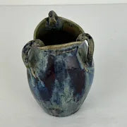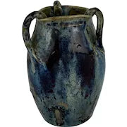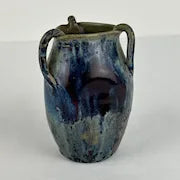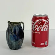 Experience the luxury of French art with this exquisite Montigny-Sur-Loing studio pottery. Inspired by the Art Nouveau movement, this small amphora boasts delicate twisted handles and pops of blue and red. An antique piece marked by award winners Albert Boue and Adolph Petit at the 1900 Paris Exposition.