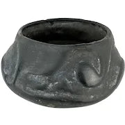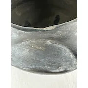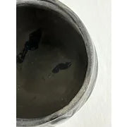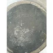 Unfortunately someone has used this valuable pottery as a planter. The upper rim is chipped here and there and the shiny glaze has been dulled by the outdoors. There is general wear here and there from the elements.
