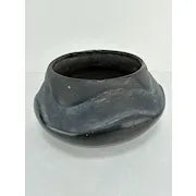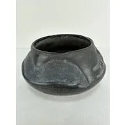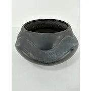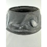 Fantastic vintage Santa Clara pottery in contrasting black tones. It is inset with a bird effigy design. The bottom is signed Teresita and Juan.
