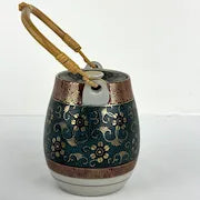 Indulge in the exquisite elegance of this Vintage Japanese Kutani ware Tea set. Made in the aochibu style, the teapot and 6 Yunomi cups feature stunning hand-painted Clematis flowers, accented with gold and raised dots. Each piece is marked "Kutani" and is a collectible treasure.