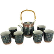 Vintage Japanese Kutani ware Teapot with 6 Tea Cups