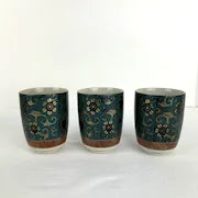 This whole set is in great near new condition with no chips, cracks, or wear on the porcelain. There is an extensive amount of cracquelure due to age. Each cup and the teacup has a “ Kutani” mark on it.