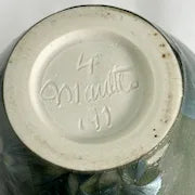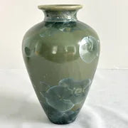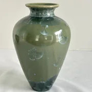 Transform your space with our exquisite vintage studio pottery crystaline celadon signed Vase. Handcrafted by artist Mautte, this collectible piece boasts a delicate celadon finish and intricate crystaline details. Elevate your decor with this one-of-a-kind vintage vase.