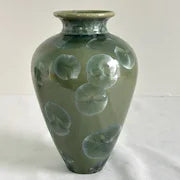 Vintage Studio Pottery Crystaline Celadon Signed Vase