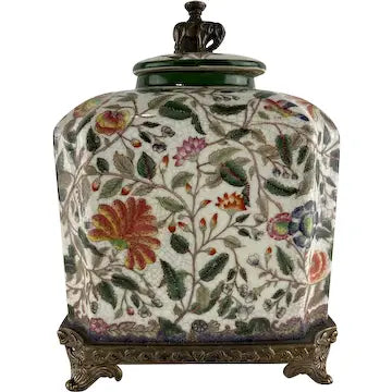 Vintage Handpainted Chinese Export Jar with Brass Base and Finial signed Hua Rong Tang Zhi