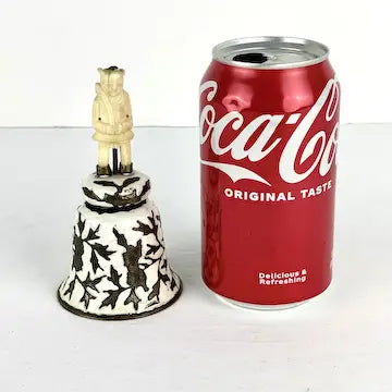 Discover the beauty of this antique Chinese enamel and bone cloisonné bell. Crafted in the late 1800s to early 1900s, this bell showcases intricate Chinese enameled and cloisonne techniques. The detailed ox bone handle features a carved figurine of an immortal, adding a unique touch. With a gorgeous floral design, this bell is a must-have for any antique collector.