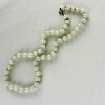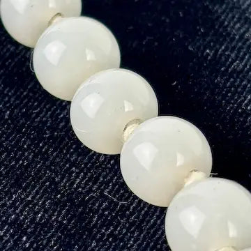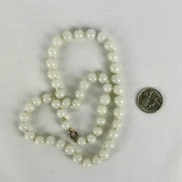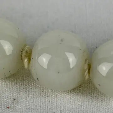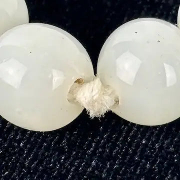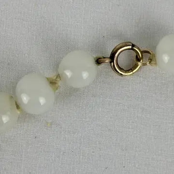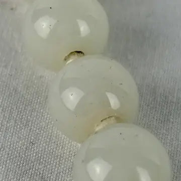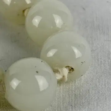 Crafted in the early 20th century by Chinese artisans, this Peking glass beaded necklace exudes elegance and sophistication. The captivating mutton fat jade color and hand-knotted design make it a timeless piece. Own a piece of history and elevate your style with this stunning necklace.