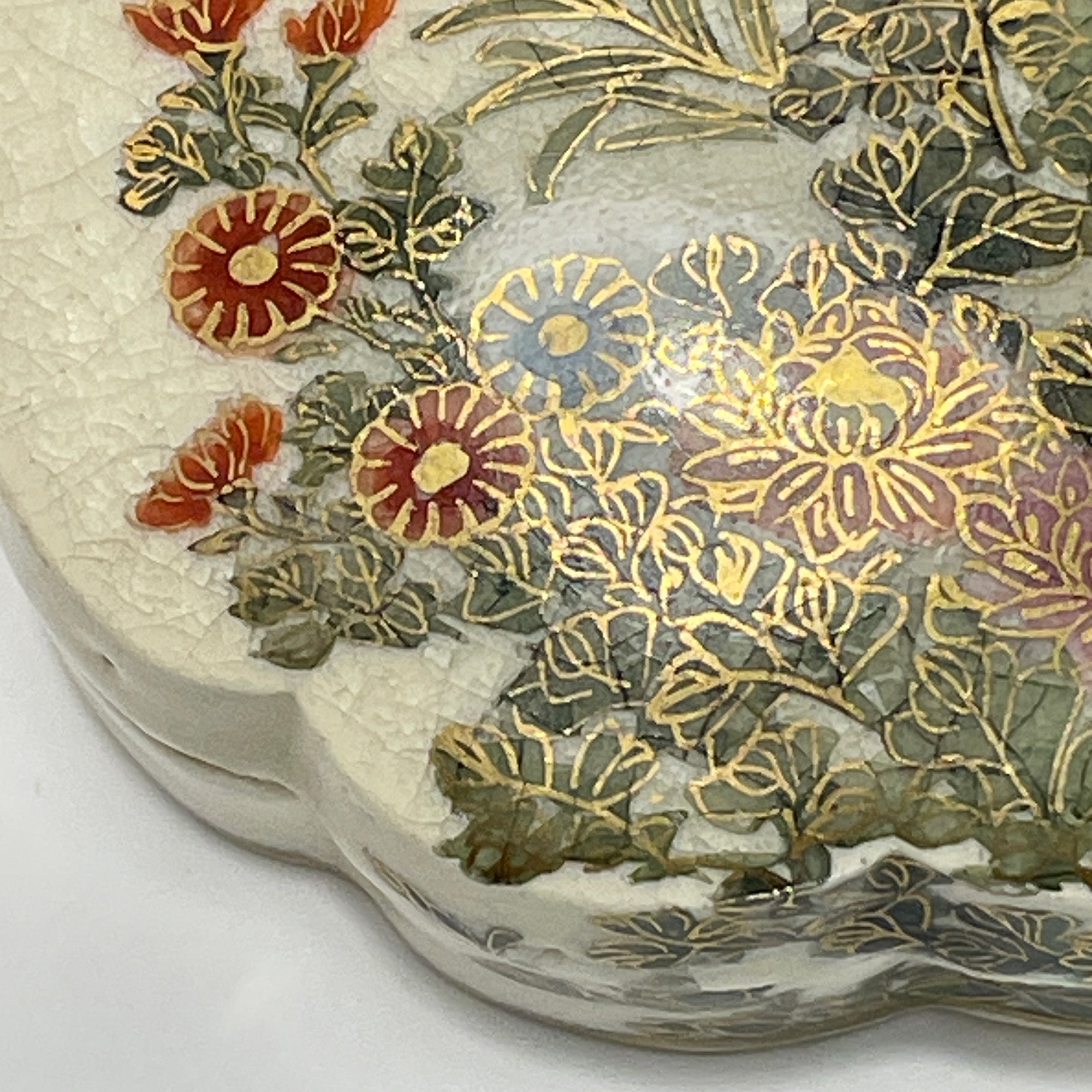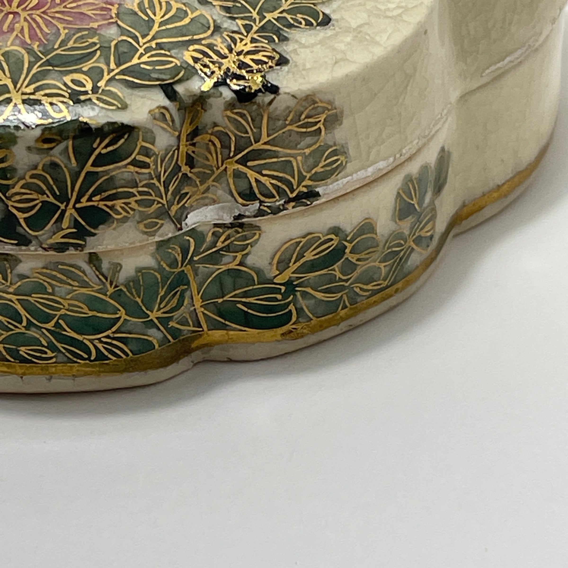 Satsuma Kyokuzan Porcelain Trinket Box with Flower Motif