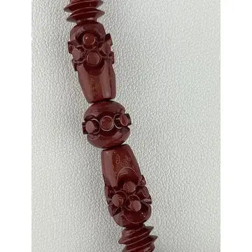 Vintage Carved Chinese Red Lacquer Shou Bead Necklace