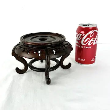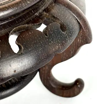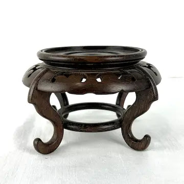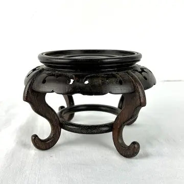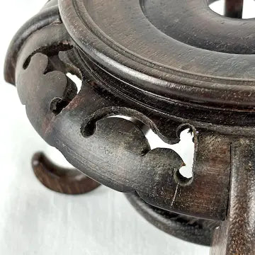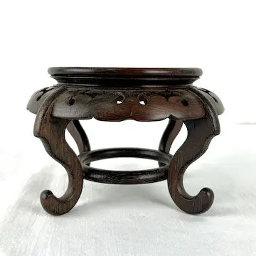 Expertly crafted and hand carved from dark hardwood, this vintage Chinese display pedestal adds a touch of elegance to any space. With its sleek decorative skirt and curled feet, it showcases your vase or decorative item beautifully. This is the perfect piece to display your asian vases on.