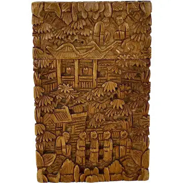 Early 20th Century Chinese Hand Carved Wood Card Case