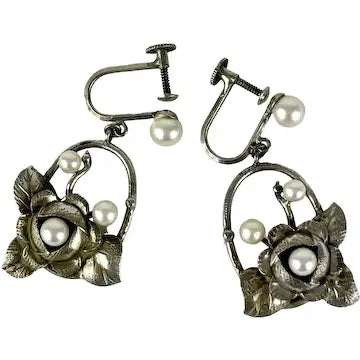 Vintage Japanese Sakata Silver and Cultured Pearl Earrings
