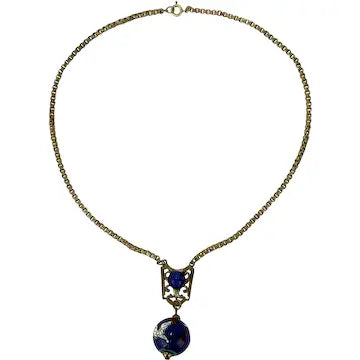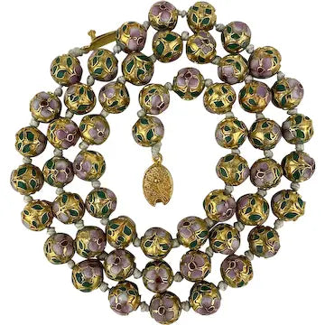 Opera Length Gilt Cloisonné Necklace with Enameled Flowers