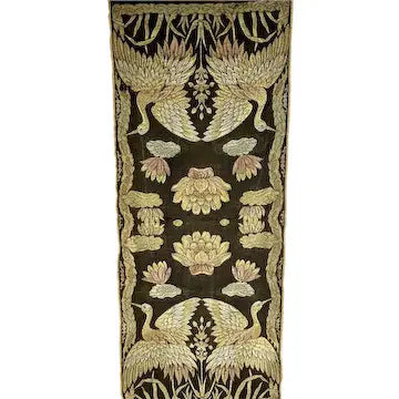 Vintage Chinese Gold Silver Copper Brocade Panel of Cranes