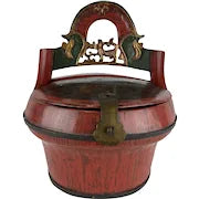 Red Chinese Antique Wedding Box Handcarved and Painted