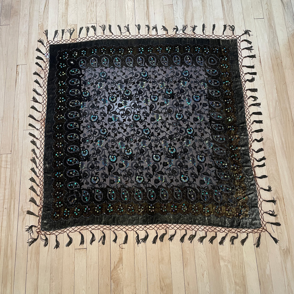 Vintage Jinjiao Black Velvet Burnout Coverlet