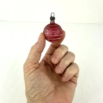 Create a stunning display with our set of 5 antique striped feather tree ornaments. These delicately blown glass ornaments feature a mix of blue, gold, pink, and yellow stripes, adding a touch of elegance to any tree. Their tiny size makes them perfect for a miniature tree or for adorning larger trees with intricate detail.
